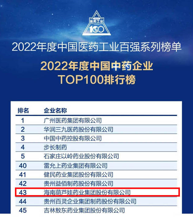 会议期间,一年一度的中国医药工业百强系列榜单隆重揭晓,币游国际药业集团凭借领先的研发优势和扎实的生产实力以及稳健的市场推广能力,连续第四年成功入选“2022年度中国中药企业TOP100排行榜” ,排名稳步上升至第43位。